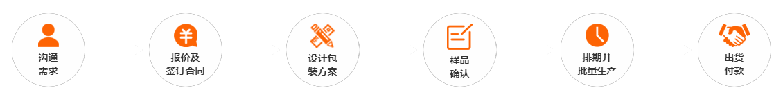 • 定制流程:客戶下單-溝通制作方案-方案設計-產品打樣 -確定樣品-交貨售后